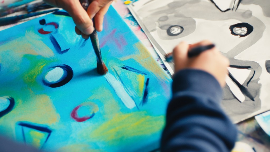 « Des enfants collaborent avec des artistes à la création d’oeuvres. Quelque part, ailleurs, un père et sa fille regardent les étoiles dans le ciel.Tous imaginent, et grâce à l’art, se rapprochent de l’enfant qu’ils sont ou qu’ils ont été »